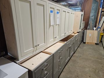 We have a warehouse full of exciting stuff, from repurposed kitchen cabinets (25 sets in stock every day), to high-end and regular appliances, vanities, and all kinds of other furniture and unique items. It's really worth the trip, we have so much interesting stuff, you never know what we are going to get this time!